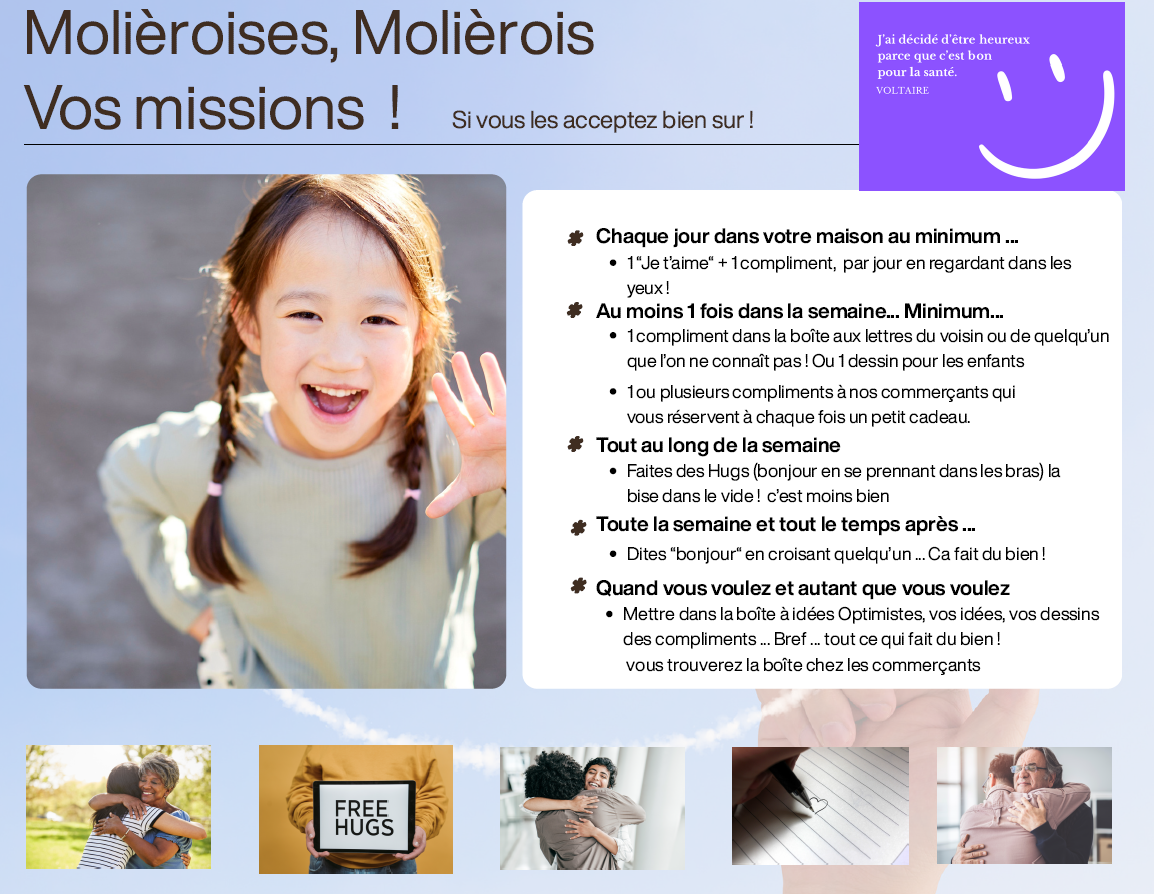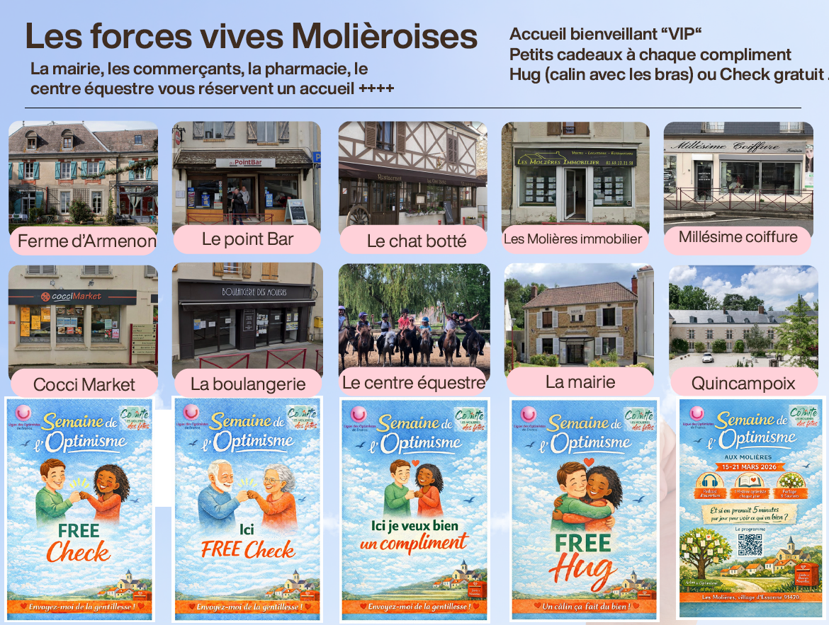 Du 15 au 21 mars 2026 aux Molières, vivez pleinement l’optimisme, nouez des liens, recevez compliments, des petits et des grands bonheurs en étant acteurs de cette initiative.